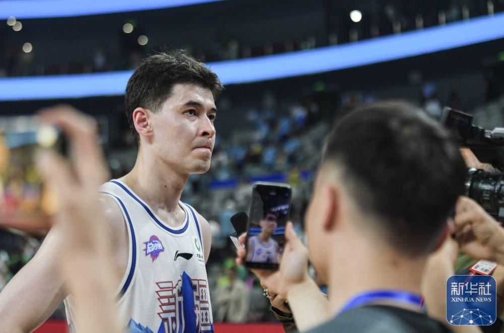 ↑新疆伊力特队球员阿不都沙拉木在比赛后接受媒体采访。新华社记者 王菲 摄