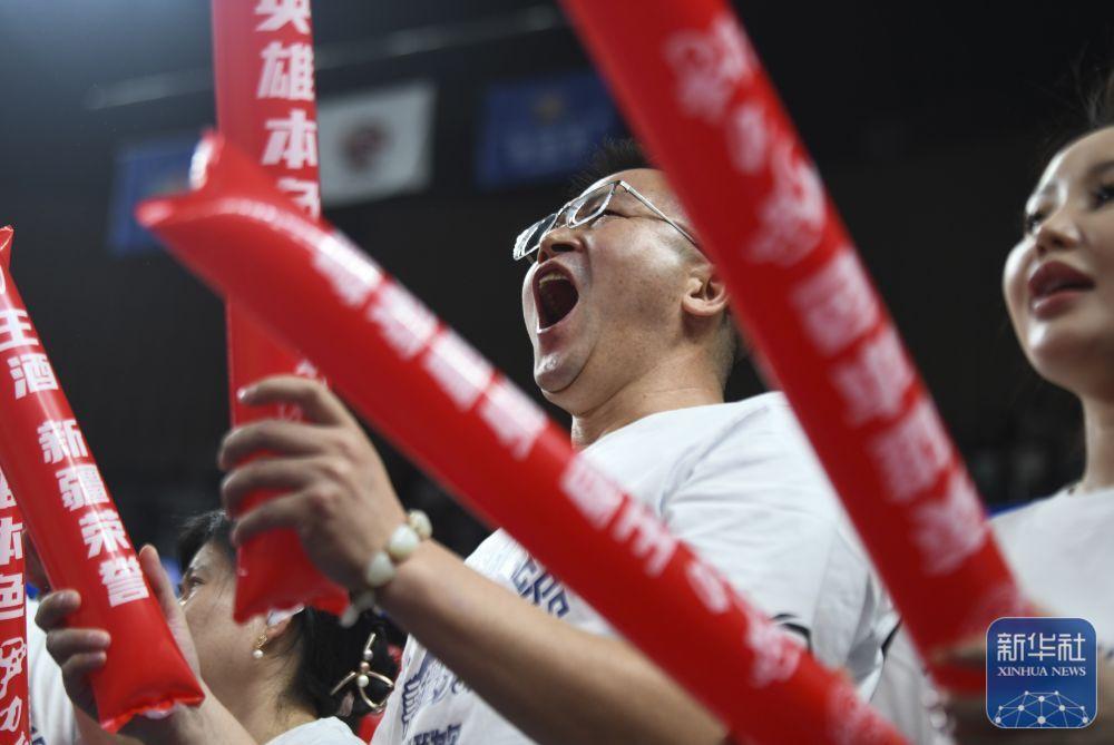 ↑新疆伊力特队球迷在比赛中为球队加油助威。新华社记者 王菲 摄