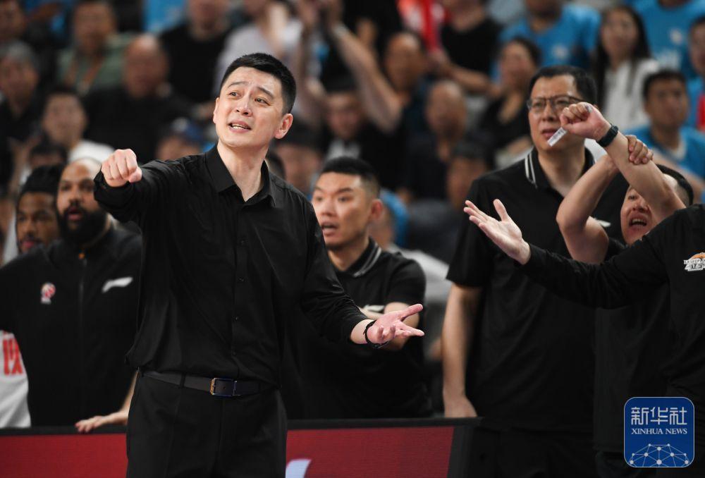 ↑新疆伊力特队主教练邱彪在比赛中指挥。新华社记者 雒圆 摄
