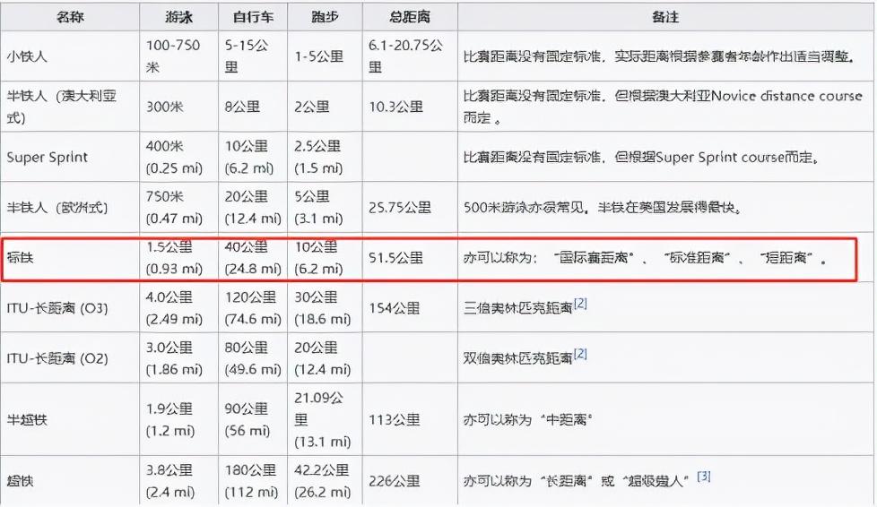 最常见的比赛分标铁距离(奥运会标准距离)、