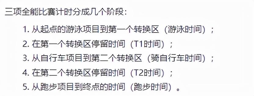转换项目时,更换衣服和鞋的时间都计算在比赛时间。