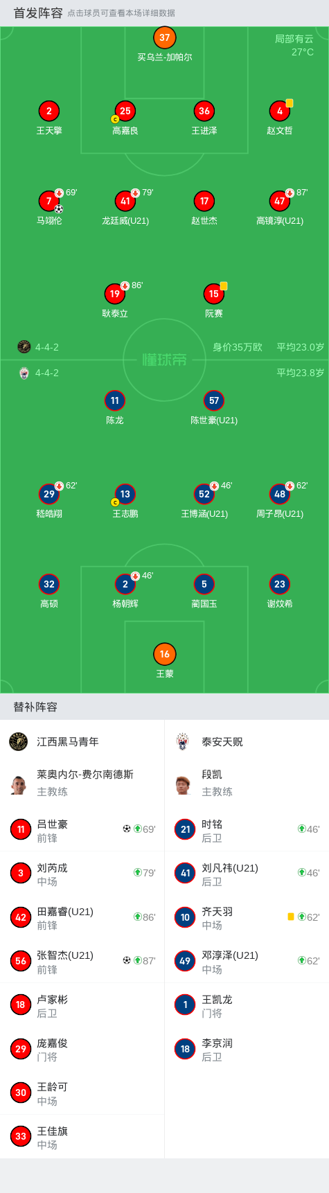 第40分钟,江西黑马青年球员马翊伦打入一球。