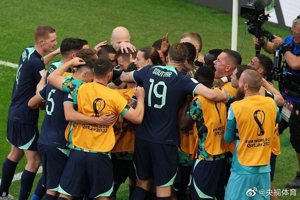 世界杯小组赛D组第2轮的一场比赛刚刚结束,袋鼠军团澳大利亚队1-0战胜突尼斯队,澳大利亚队取得本届世界杯第一场胜利。