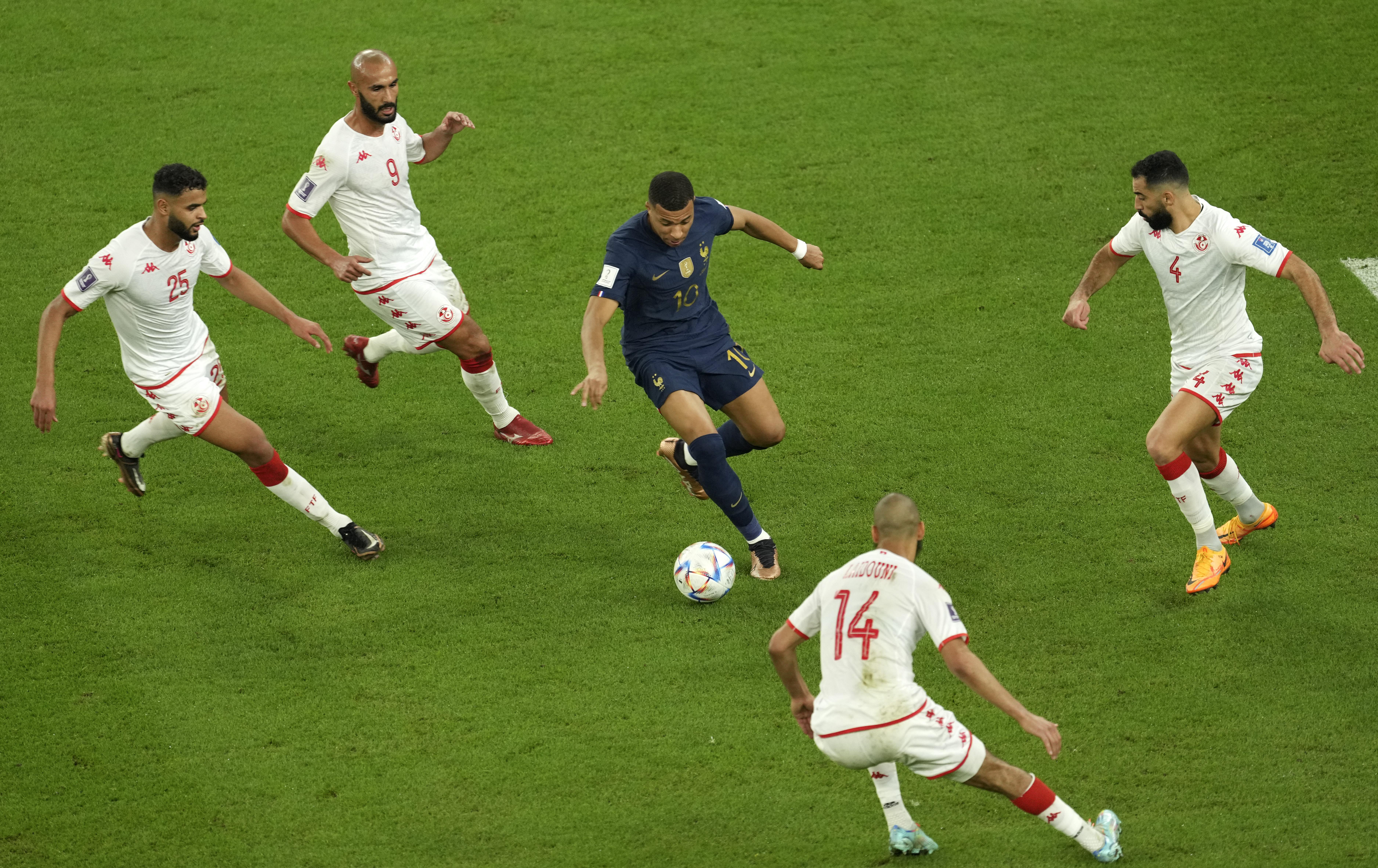 丢球后的法国队此后接连换上姆巴佩、格列兹曼、登贝莱等主力加强进攻,突尼斯队则全线退防。第89分钟,姆巴佩在左路底线连过两人后射门,皮球被突尼斯门将艾门·达门飞身扑出。补时最后时刻,格列兹曼在禁区内抢射打入一球,但主裁判经过视频助理裁判(VAR)回放判定越位在先,法国队绝平进球被判无效。