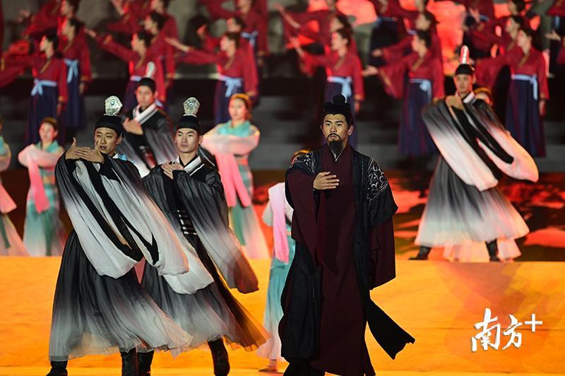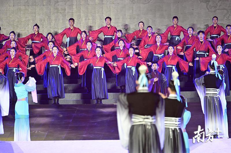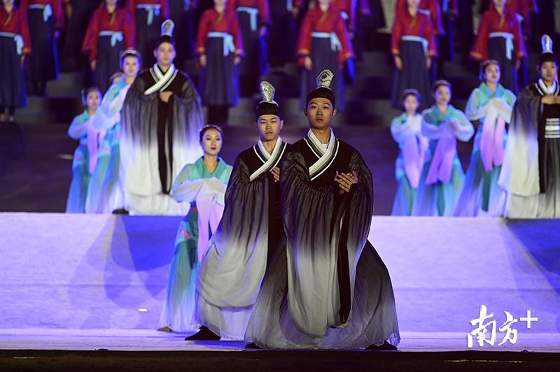 鼓乐声中,72位孔子弟子群诵“有朋自远方来”,各代表队进场。