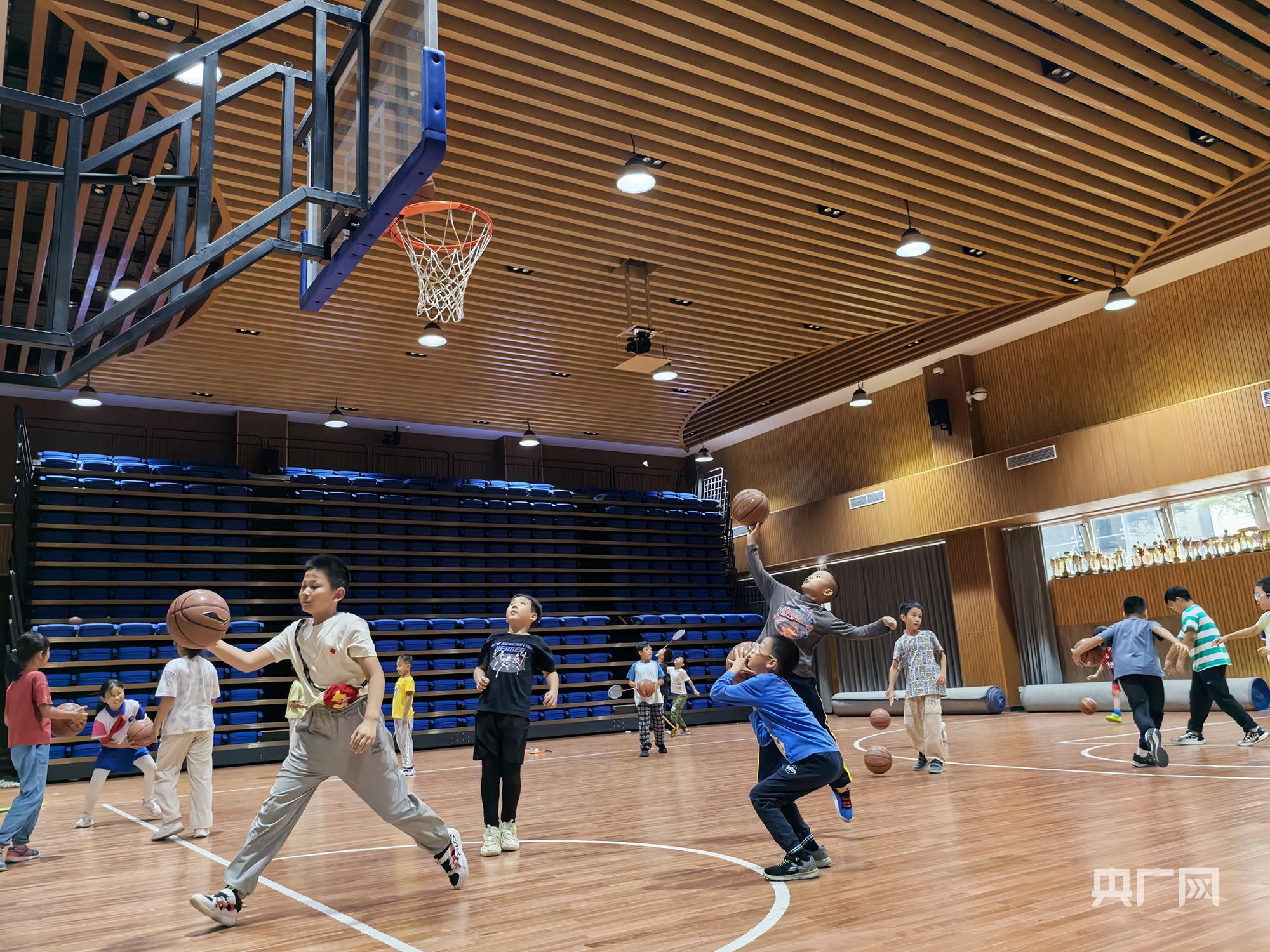 石油附小学生在30分钟“大课间”打篮球(央广网记者 阮修星 摄)