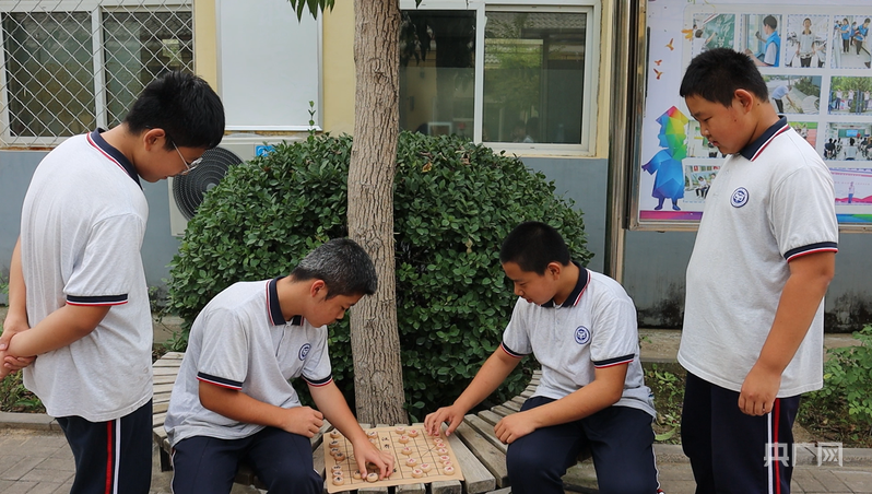 孩子们在课间下象棋(央广网记者 庞婷 摄)