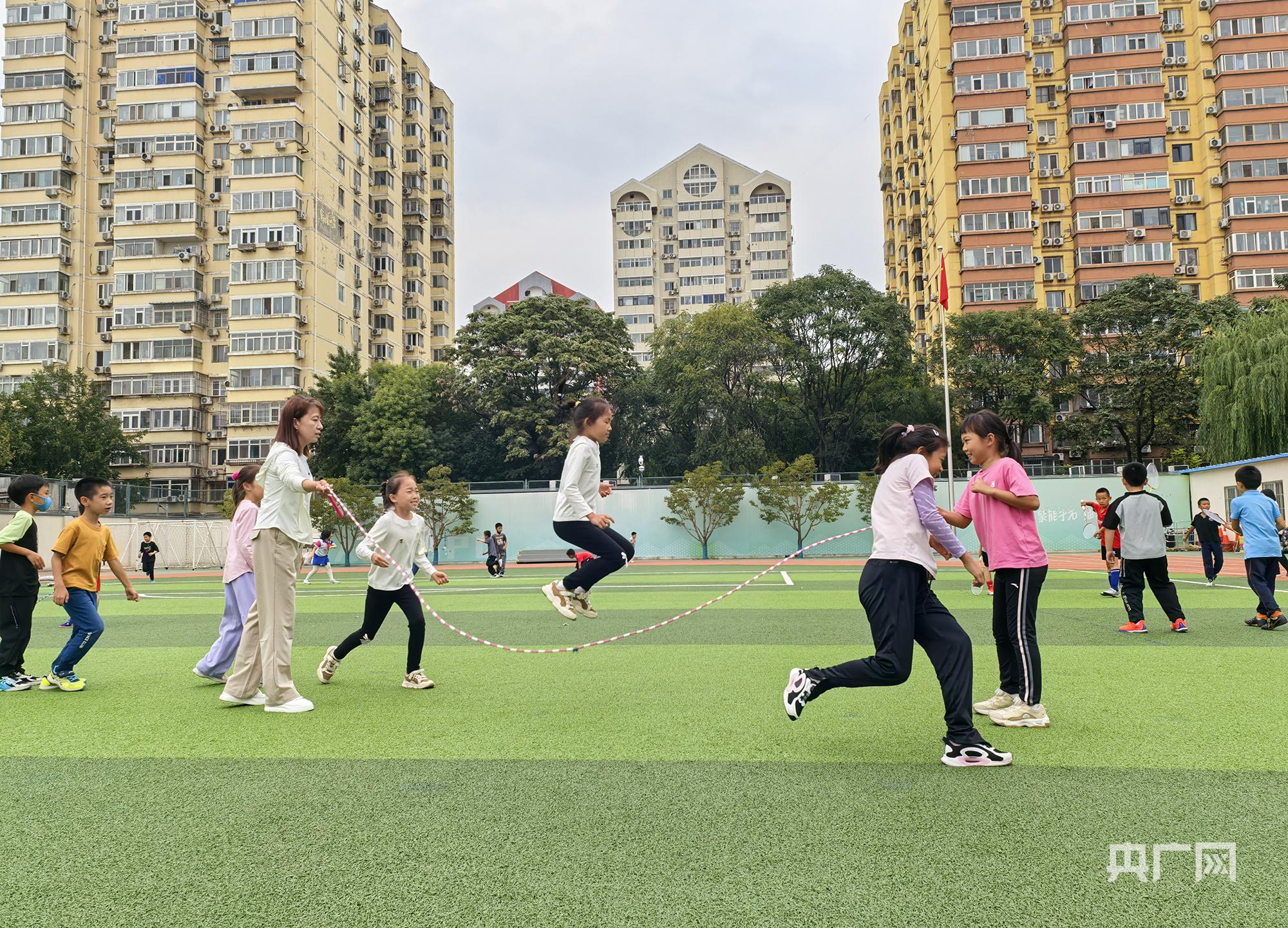 据北京石油学院附属小学(简称“石油附小”)体育主任刘毅介绍,石油附小此次对课间活动做了大量优化工作,包括调整场地布局和设施,确保孩子们能在学校的任何一个角落,都能尽情享受大课间带来的欢乐。与原先的10分钟课间相比,新增的5分钟让孩子们有了更多时间去参与各种活动。