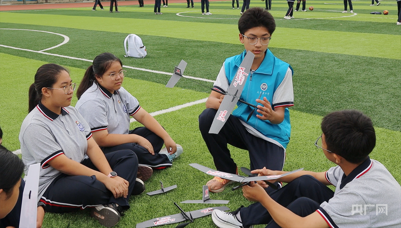 “现在课间的体育活动变得特别多。我们不仅可以踢毽子、踢足球、跳绳,在大课间的时候,还会组织一些科技类的活动,我们可以跟高年级的学长学姐学习航模知识,在玩的同时还能学到科学知识,特别有趣。”初一(1)班的甄一芃说。