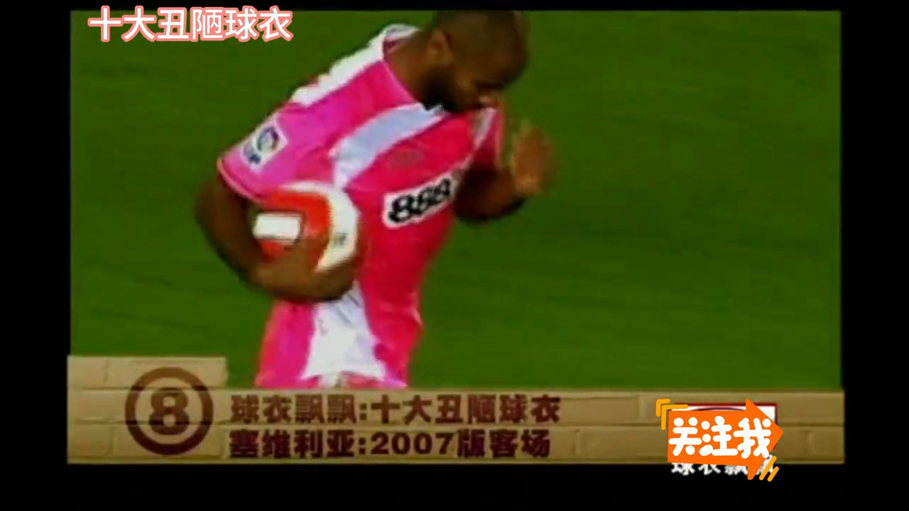 ·第九位:卡麦隆,两千零二版,难看指数六点五。足球场上从来不会拒绝明艳的颜色,荷兰队的橙色,罗马尼亚队的黄色,都曾在世界赛场上给我们留下过美好的印象。但是像零七零八赛季塞维利亚队这样的艳粉色,未免有些明艳过度。