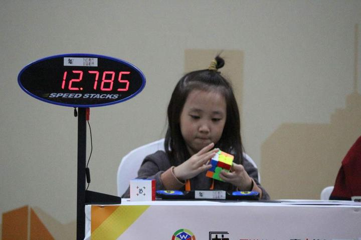 然而,李同学并不是现场手速最快的选手,因为曾以三阶平均5.48秒成绩创造世界记录的许瑞航也来了。许同学如今是观成的初一学生。