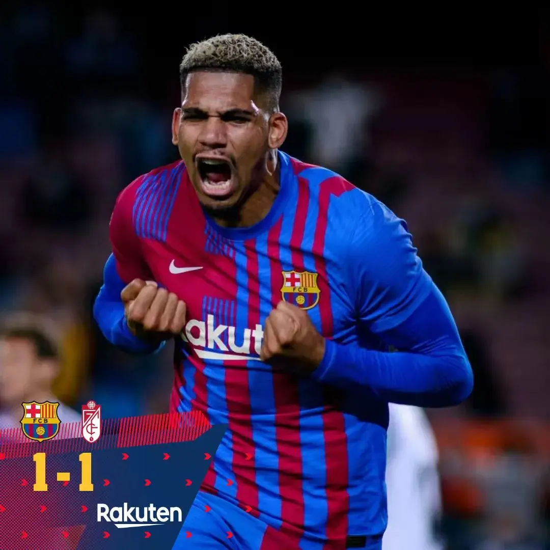 比赛第89分钟,阿劳霍第四次头球攻门终于成功,巴萨1-1格拉纳达!