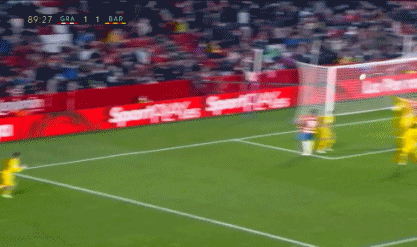 第89分钟,格拉纳达角球机会,禁区内安东尼奥-普埃尔塔斯劲射破门扳平比分,巴萨1-1格拉纳达!