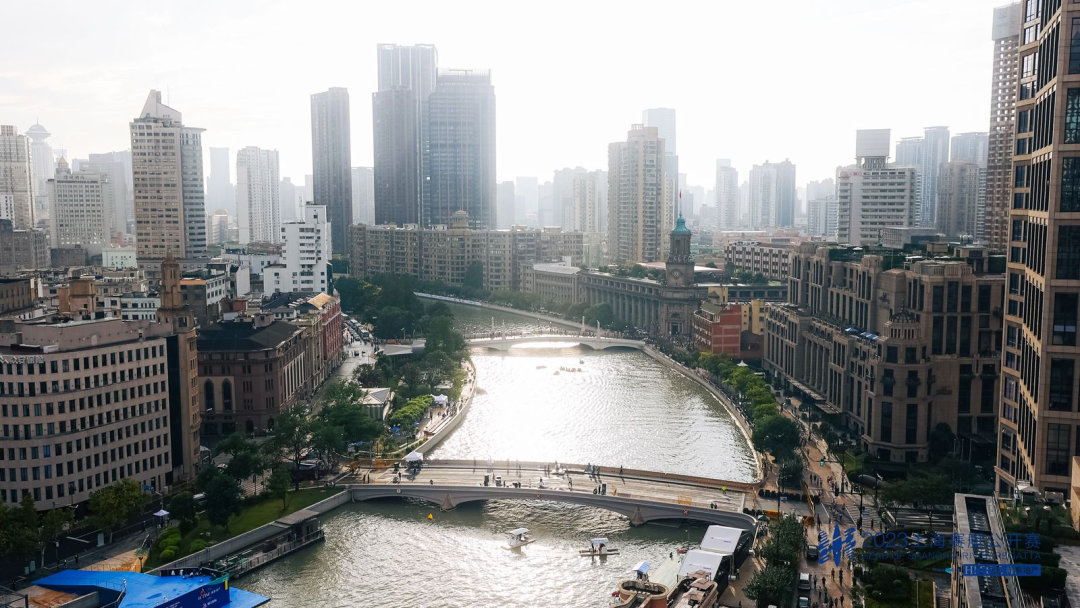 如今的苏州河水清岸绿,北苏州路虹口段更是有名的网红慢行区,赛艇,绿化小品和百年老建筑相得益彰,现场观众随手一拍,就是大片。近年来,虹口“一江一河”公共空间贯通开放和两岸景色的打造,让游客能“走得进来,坐得下来”,充分体现了“把最好的资源留给人民”的人民城市理念,是打造中国式现代化重要展示窗口的生动实践。