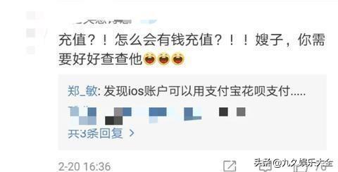 照片晒出后,有网友评论道:“充值?!怎么会有钱充值?!嫂子,你需要好好查查他。”对此,郑敏也回复道:“发现ios账户可以用支付宝花呗支付……”看来郑敏平时还是掌握家里财政大权的人,而岳云鹏发现了花呗这项功能,提前把以后的零花钱用掉了。