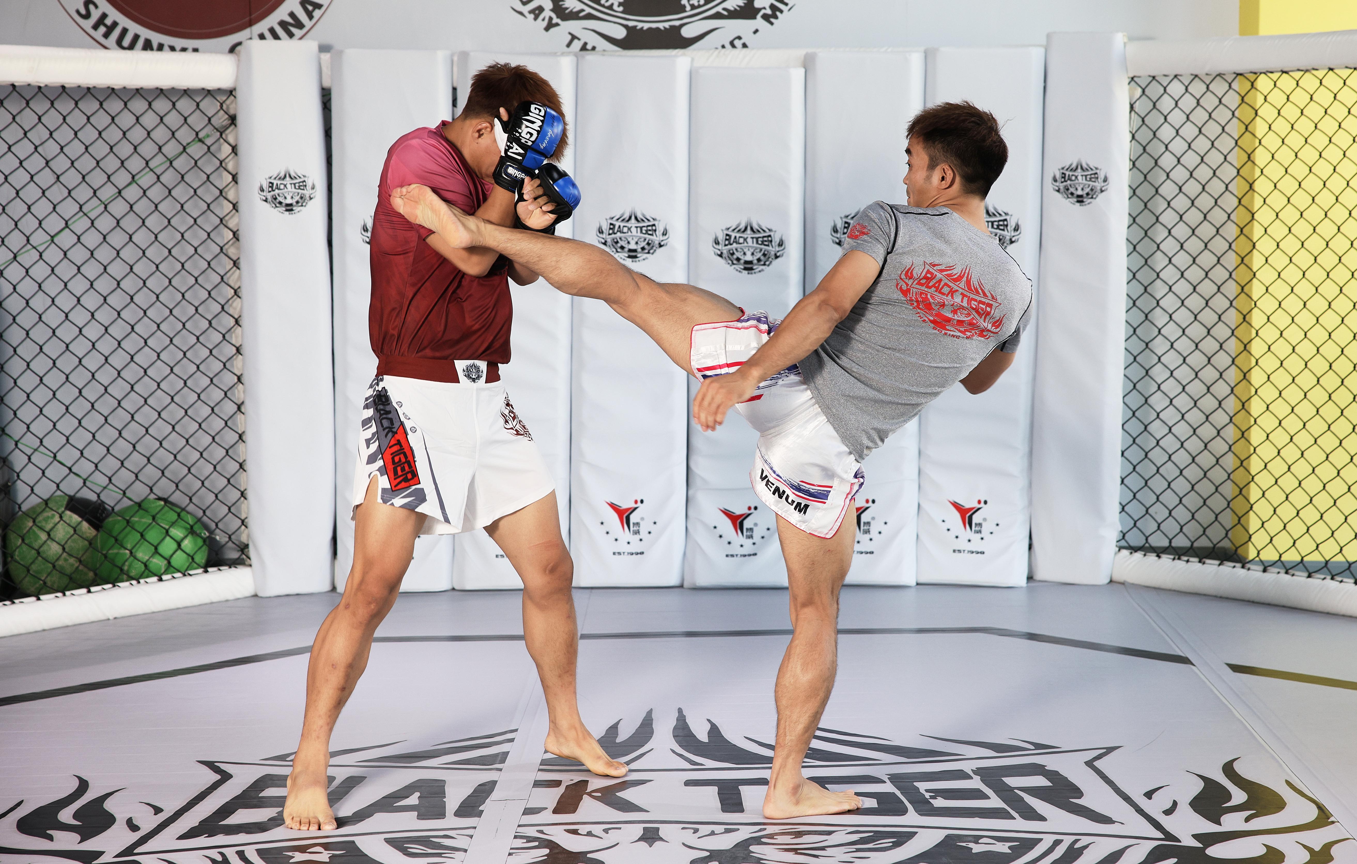 泰拳经典招式:跳膝。 新京报记者 郭延冰 摄
