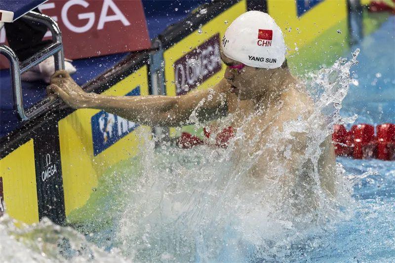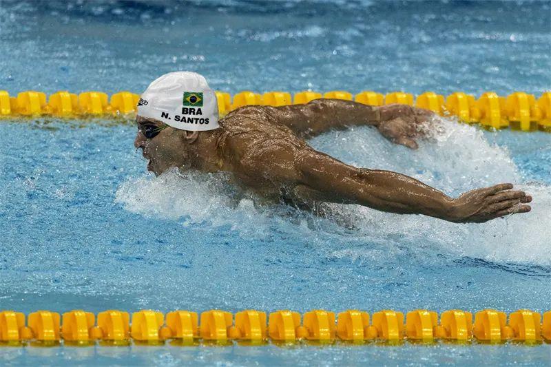 一般游泳运动员起跳入水前深呼吸表情、准备动作、腾空入水动作、划水姿势、抬头呼吸表情,以及到达终点后在池边的各种动作表情等,是拍摄时的重点画面。拍摄游泳画面最好能看到运动员的面部,水花、水帘、水滴在运动员脸部周围的各种奇怪形态,拍出来也很有趣。游泳看似好拍,实则出片难度很大,需要不断实践和总结提高。