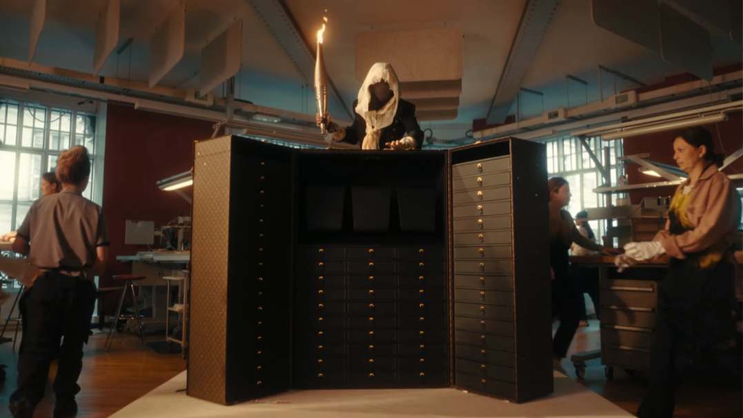 还有开幕式上,那场记录Louis Vuitton工坊里奖牌箱制作的全过程,以及它穿越巴黎,从Pont Neuf一路抵达Trocadéro的传奇旅程的表演。
