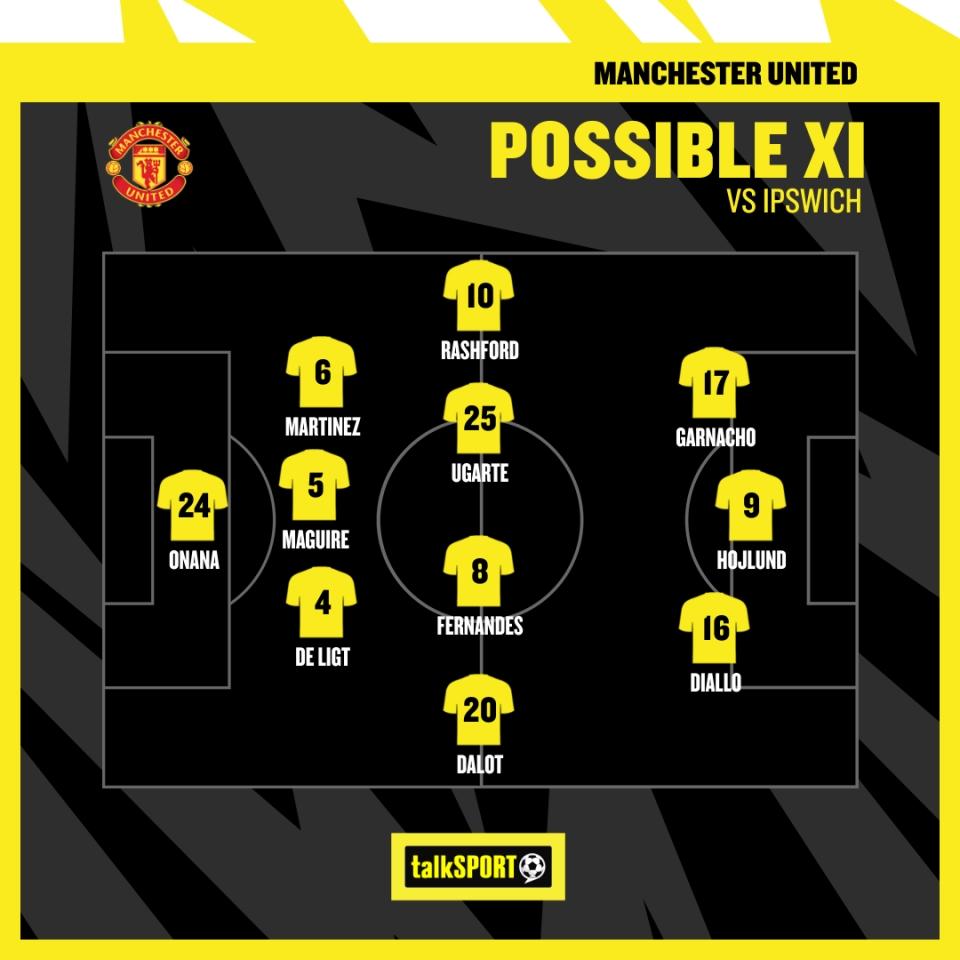 直播吧11月1日讯 据英媒talkSPORT预测,阿莫林执教曼联的第一场比赛将是11月24日客战伊普斯维奇,拉什福德&达洛特可能出任左右边翼卫。