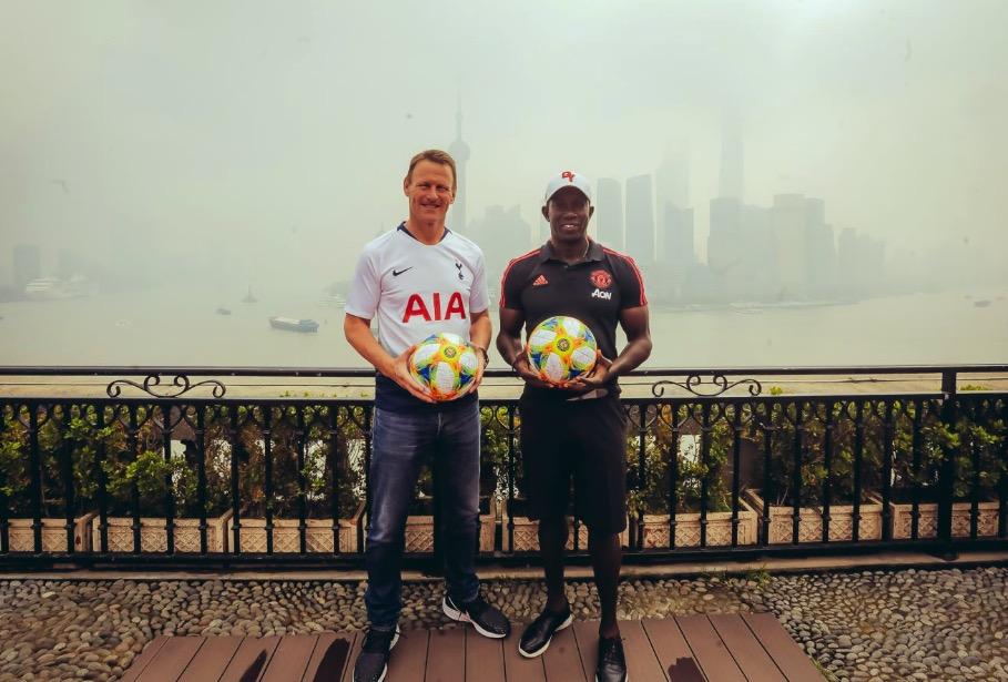 这场令人期待的对战由 RSG 首席商务官孙岱威先生, 上海市足球协会副秘书长陈富贵先生,友邦中国首席执行官张晓宇先生在上海举行的新闻发布会上宣布。英国足坛传奇球员——泰迪-谢林汉姆与德怀特-约克也分别代表热刺及曼联,现身这场发布会。