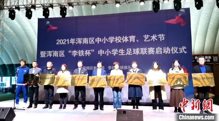 中新网沈阳4月19日电(赵桂华)4月19日上午,在沈阳市李铁8号足球公园,伴随着中国国家男子足球队主教练李铁的开球,沈阳市浑南区“李铁杯”中小学足球联赛正式拉开序幕。