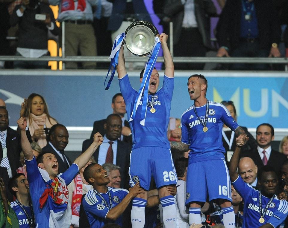 2012年:欧冠决赛上切尔西对阵拜仁慕尼黑,切尔西在紧张的点球比拼后夺得冠军。特里尽管被禁赛,还是全副披挂在赛后登场,双手高举装饰着蓝色绶带的奖杯庆祝。他因半决赛中以膝盖顶撞巴萨的桑切斯背部而受到处罚。