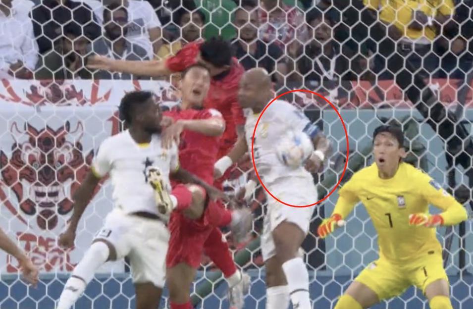 加纳这次进攻中,伊纳基-威廉姆斯有手球嫌疑:皮球打在威廉姆斯的手上,萨利苏跟上破门。韩国全队向裁判抗议:加纳的进攻有手球犯规!