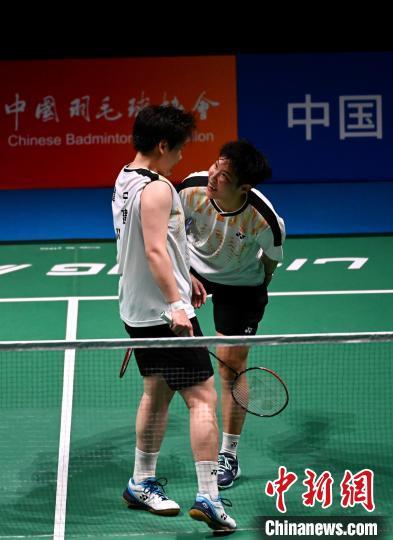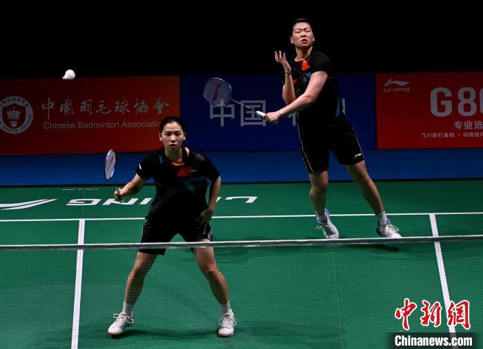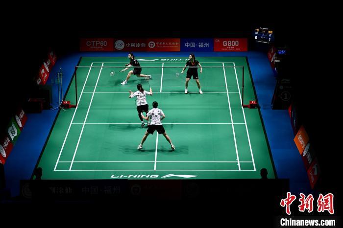 11月1日,2024年全国羽毛球团体锦标赛甲组女子团体半决赛在福州海峡奥体中心举行。最终,福建队以3比2战胜广东队进入决赛。图为福建队选手黄东萍(前)与谭宁在比赛中。中新社记者 王东明 摄