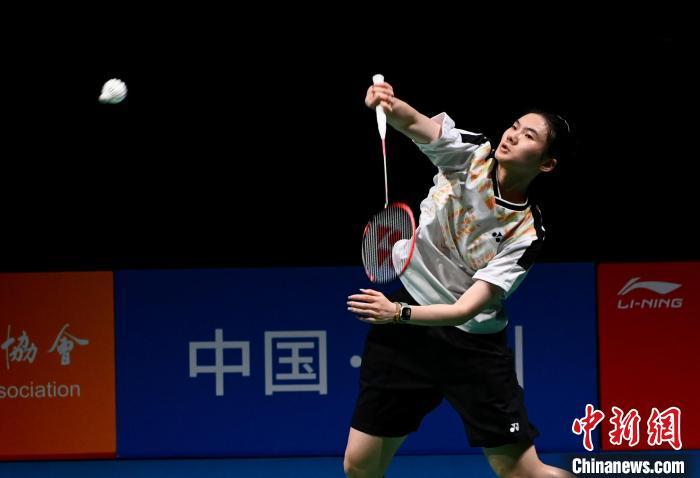 11月1日,2024年全国羽毛球团体锦标赛甲组女子团体半决赛在福州海峡奥体中心举行。最终,福建队以3比2战胜广东队进入决赛。图为广东队选手邬洛愉在比赛中。中新社记者 王东明 摄