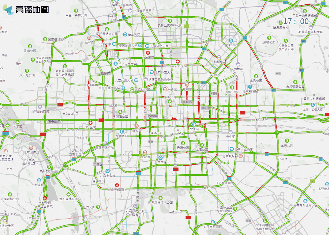 晚高峰期间,城区环路部分路段,万泉河路至圆明园西路、通惠河北路、莲石东路等城区道路出城方向车流集中,京藏高速、京承高速、京通快速、京港澳高速、机场高速等高速公路出京方向将出现潮汐车流,高峰时段为17:30—20:00,周二、周五晚高峰交通压力将尤为突出。
