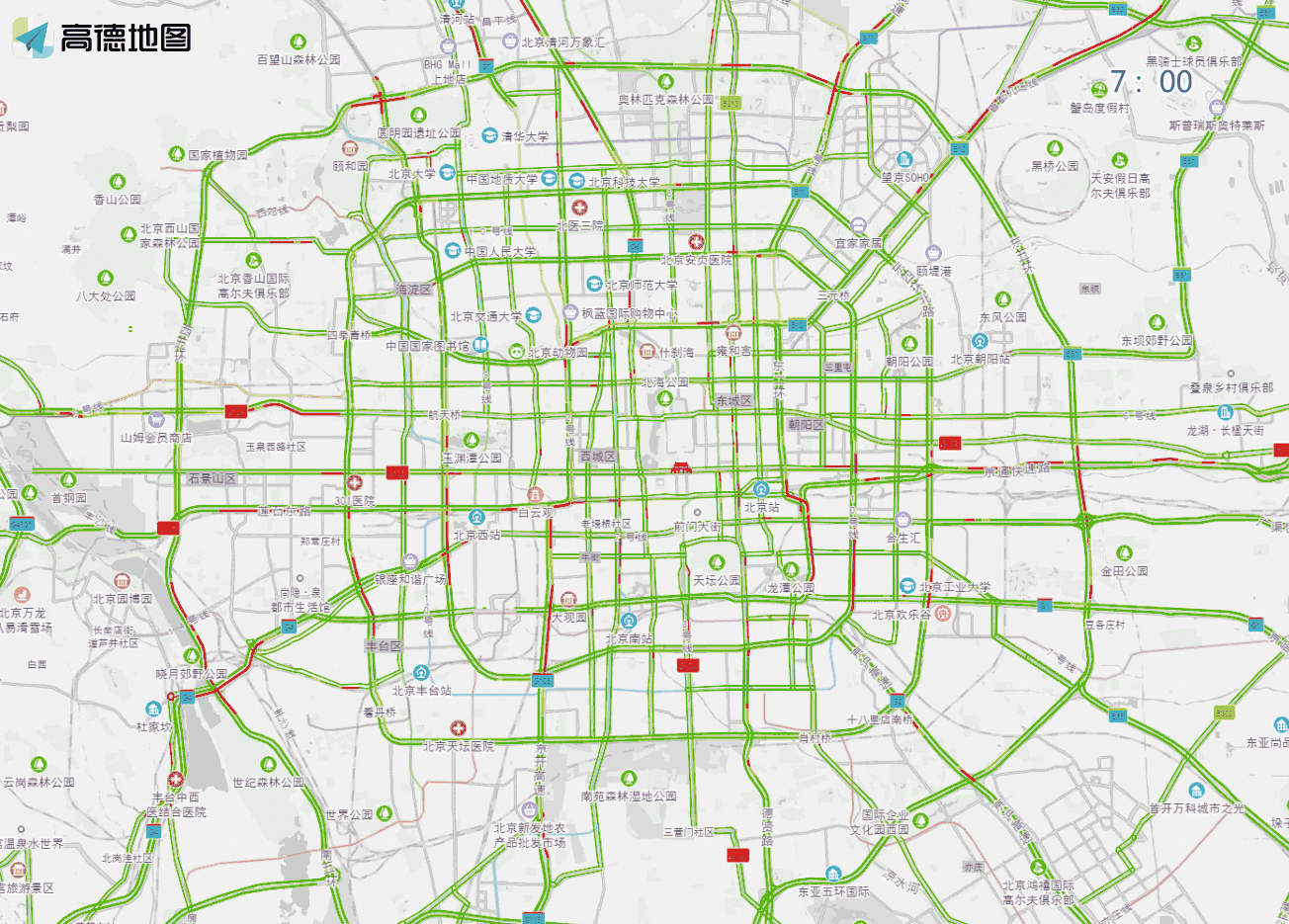 早高峰至上午,预计复兴医院、肿瘤医院、儿童医院、北医三院等医院门前及周边道路车流量较大,高峰时段为7至13时和下午部分时段。