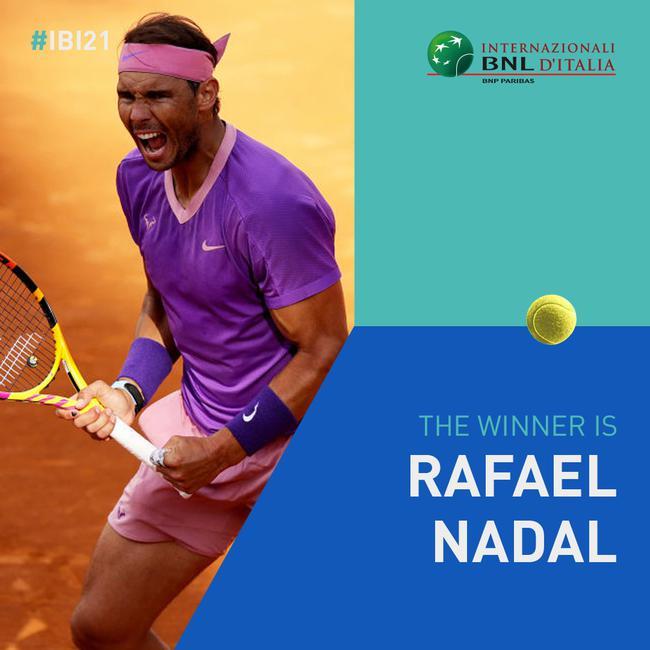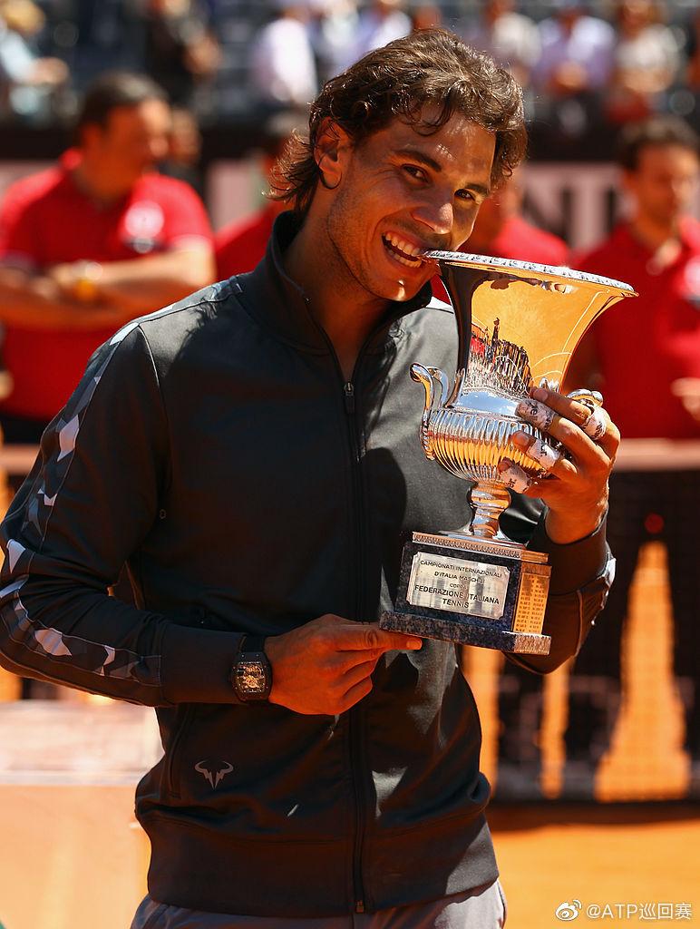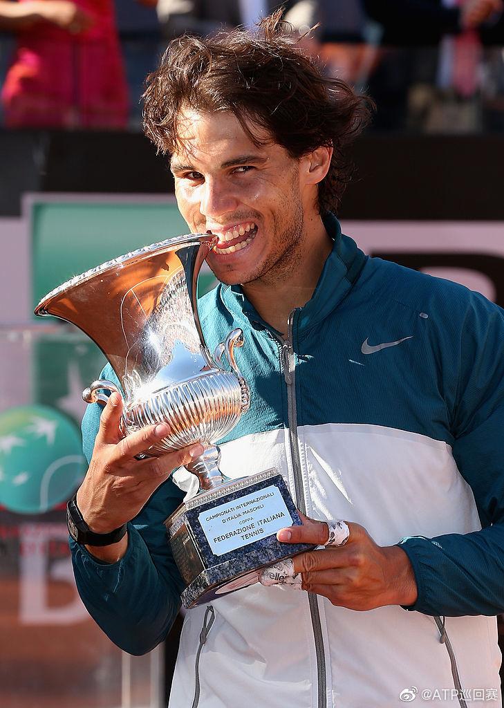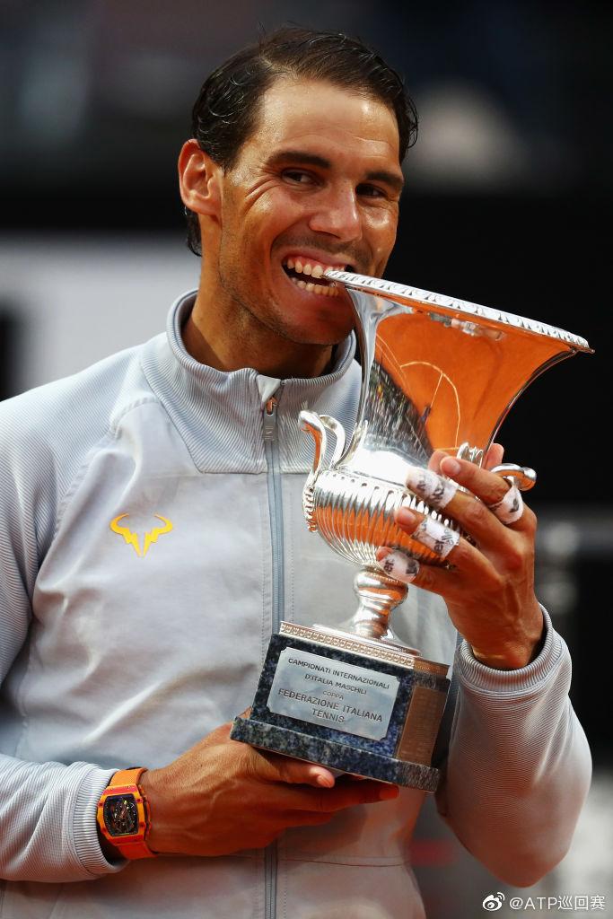 纳达尔罗马10冠咬杯图集↓(图源:@ATP巡回赛)