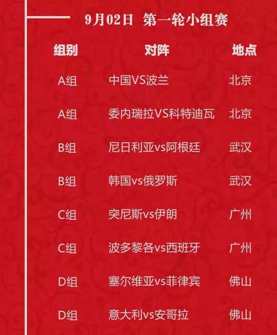 A组:科特迪瓦、波兰、委内瑞拉、中国(北京)