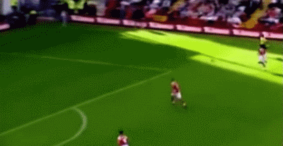 在和查尔顿的比赛中,埃布埃一记力道过猛地传中,被禁区外迎球赶到的罗宾以雏鹰起飞一般的姿势硬生生踹进了球门。
