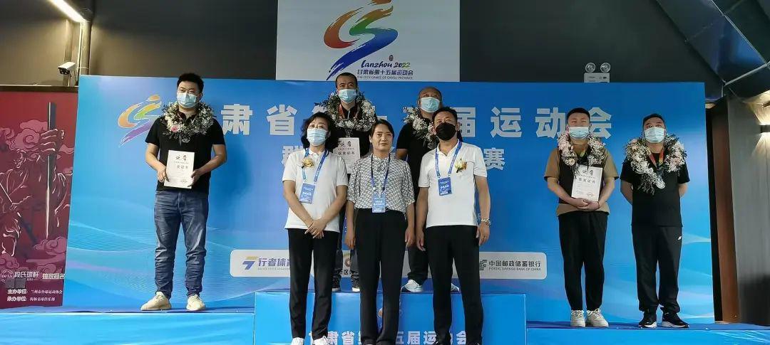 甘肃省第十五届运动会竞赛委员会副主任、甘肃省体育局群众体育处处长马艳萍;仲裁委员会主任梁永振;技术代表周军妮;仲裁委员会副主任张光江;仲裁委员会副主任陈徳祥等领导为获奖选手颁奖。
