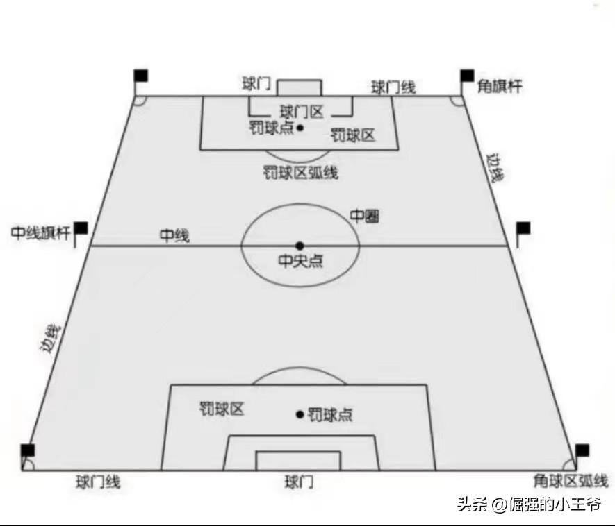 足球比赛规则比赛场地必须是长方形,边线的长度必须长于球门线的长度。长度:90–120米,宽度:45–90米;国际比赛: 长度:100–110米,宽度:64–75米,世界杯采用的长度是105米,宽度是68米。