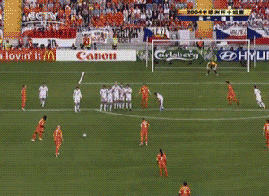 开场仅仅三分钟,双方还处于试探阶段之时,荷兰队就率先发难,罗本前场右路开出任意球,禁区后点的布鲁马一个俯身冲顶将球顶进,荷兰取得梦幻开局。
