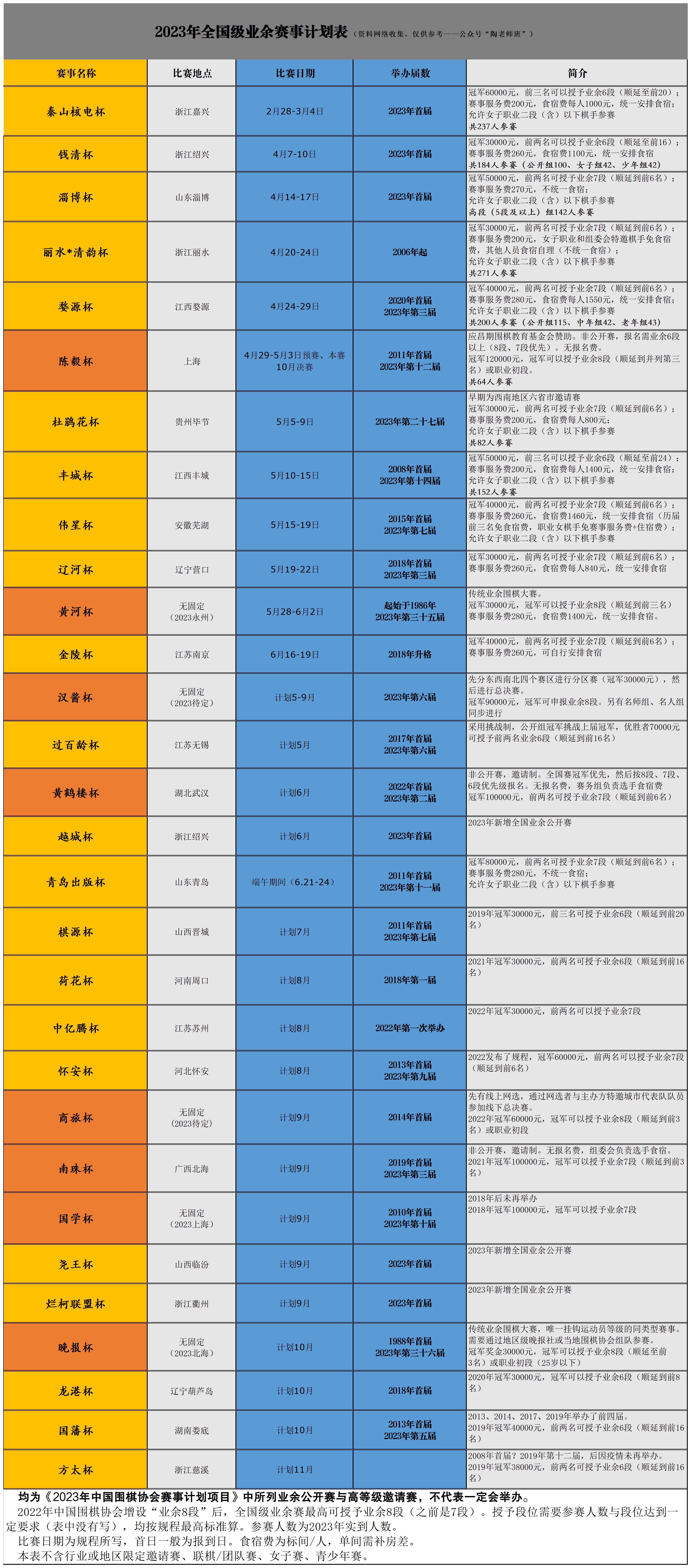 下面我们看看今年的赛事计划中有哪些全国级业余赛事↓