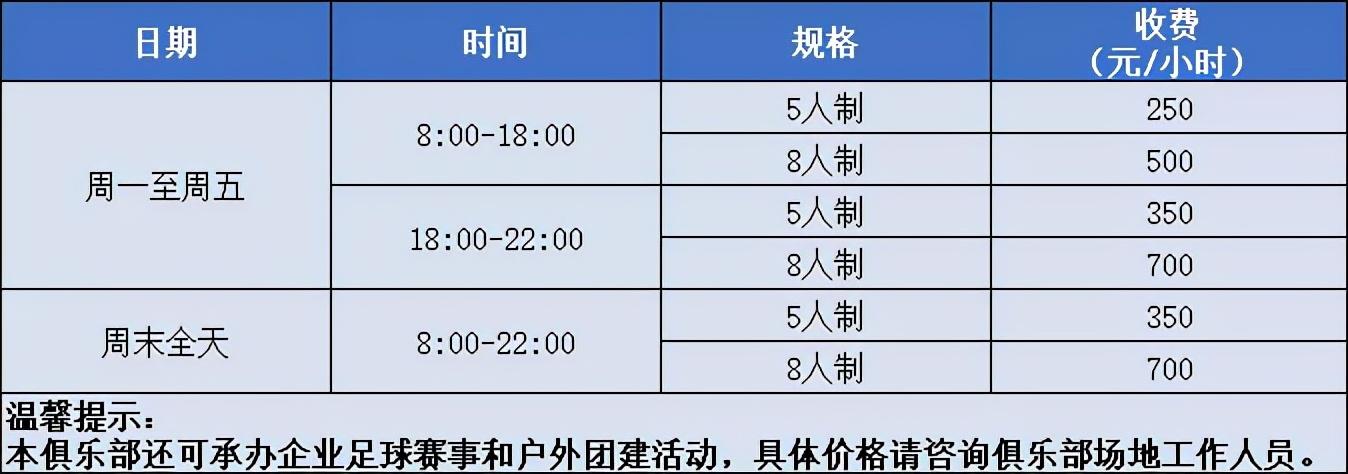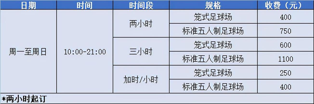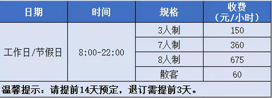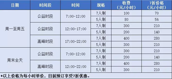 收费标准:7人制3000-6000元/2小时、