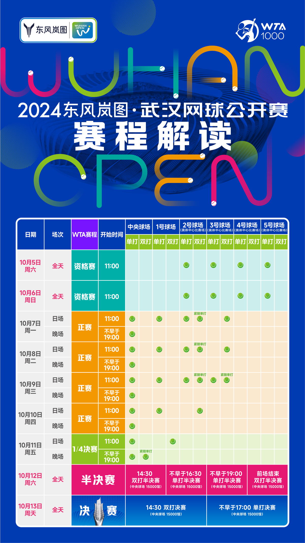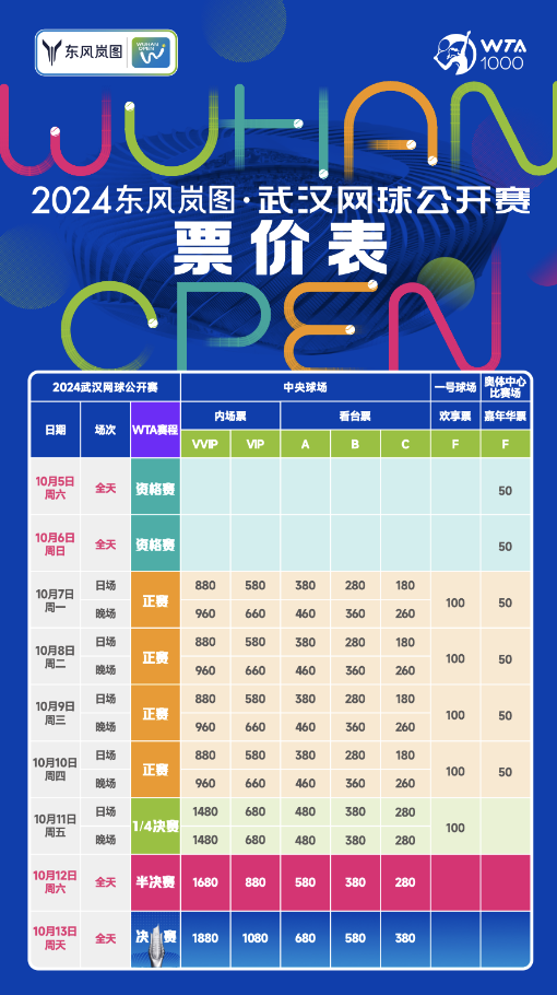 随着2024东风岚图·武汉网球公开赛的临近,票务销售系统于8月20日12时正式启动。今年,在光谷国际网球中心将迎来106场精彩绝伦的对决。赛事共分为两个阶段:10月5日至6日的资格赛,以及10月7日至13日的正赛。