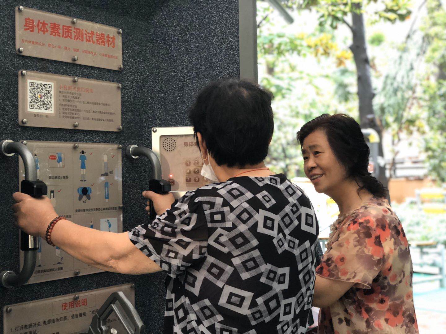 “天好的时候人不要太多噢,有很多是附近小区的居民。”在健身车旁,67岁的张明明阿姨正准备根据语音提示做体质测试。“这个能测身高、体重,告诉我胖不胖、心脏情况什么的,蛮实用的。”测试前,只要扫描器材上的二维码进入小程序,各项测试记录就能传到手机上,还能根据测试者的身体情况推荐合适的“运动处方”。“你看先进伐?”她说,这里刚建好时她就带着儿子来看,“他说这里不比外面健身房差,结果我们找半天没找到投币孔,原来是免费的!”