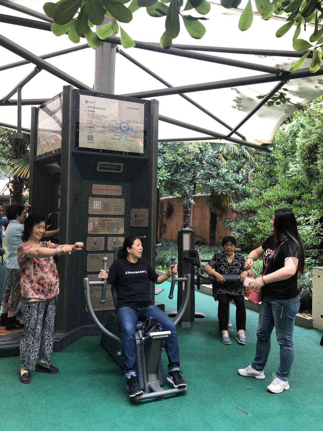 “这套智能健身房是我们在上海社区内安装的第一套也是目前唯一一套设备,现在已经有好几家小区在联系我们了。”“好家庭”室外智能健身房相关负责人黄小姐介绍,这里需要通电的器材使用的是智能自发电,将运动者克服阻力做功消耗的动能转化为电能,“靠运动发电,可以督促大家‘动起来’,而且更安全环保”。