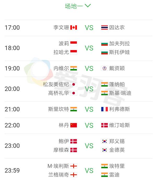 场地一:林丹VS维汀哈斯、戴资颖VS内维尔