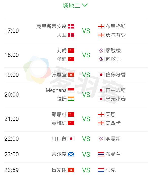 场地二:刘成/张楠、郑思维/黄雅琼登场
