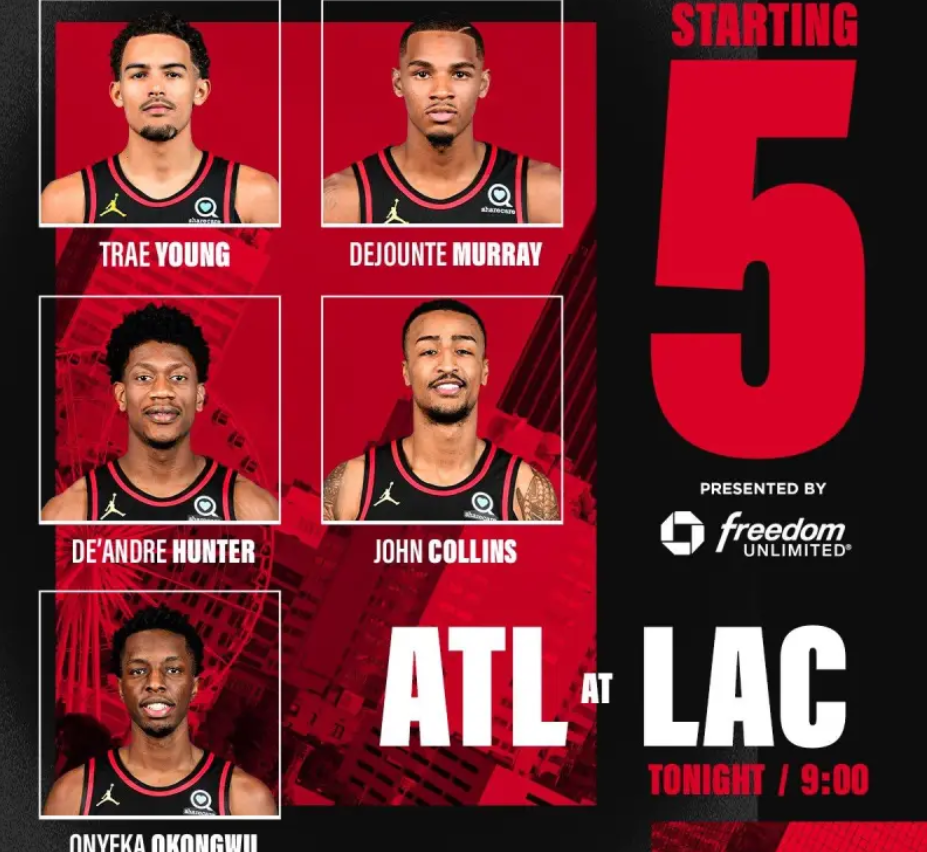虎扑01月09日讯 老鹰官方更新推特,公布了今天球队的首发阵容。