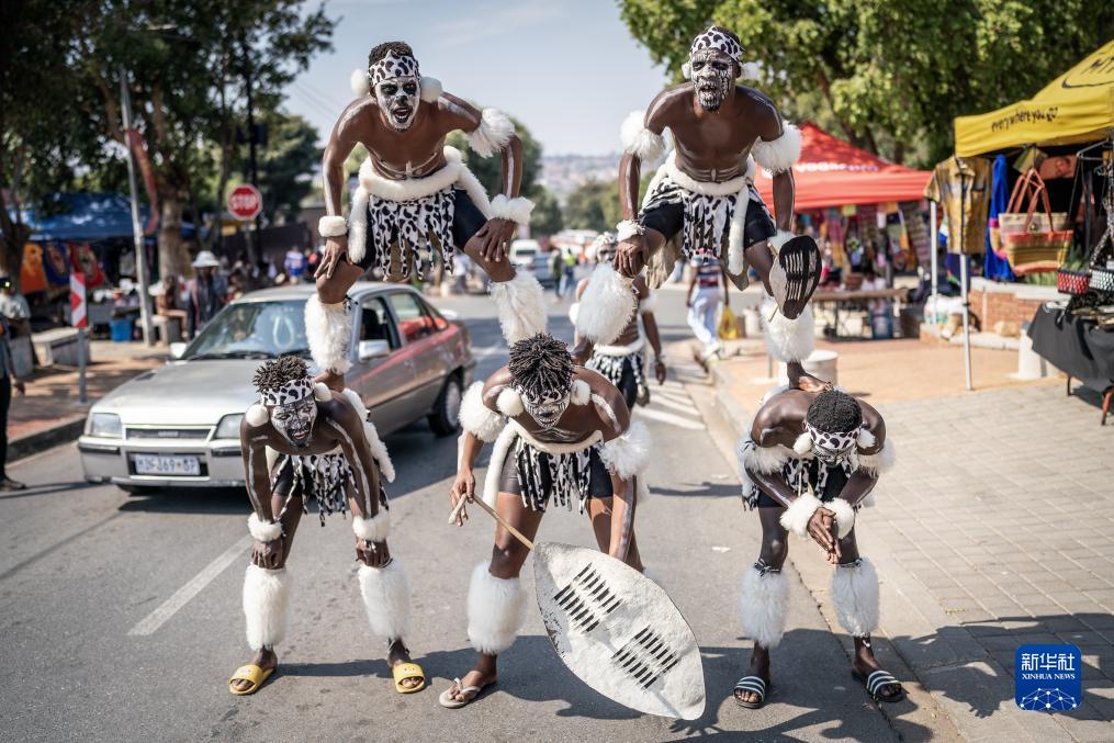 2023年4月27日,在南非约翰内斯堡索韦托,舞者在街头表演。