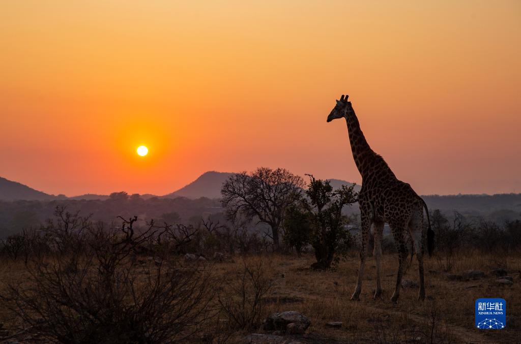 这是2022年9月17日在南非克鲁格国家公园内拍摄的长颈鹿。