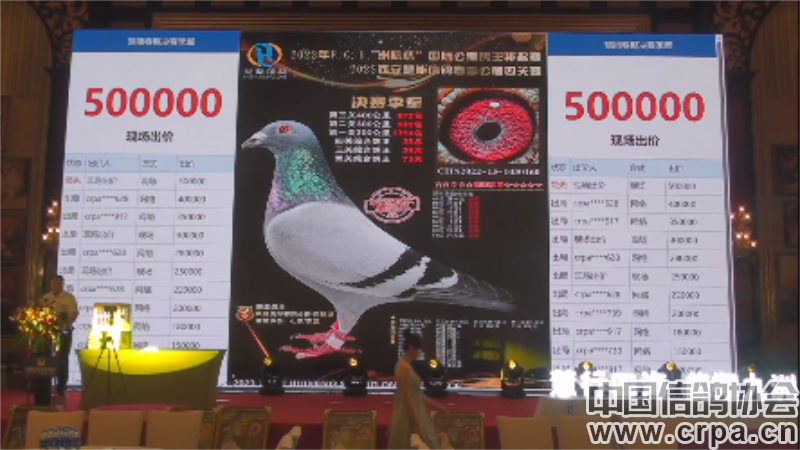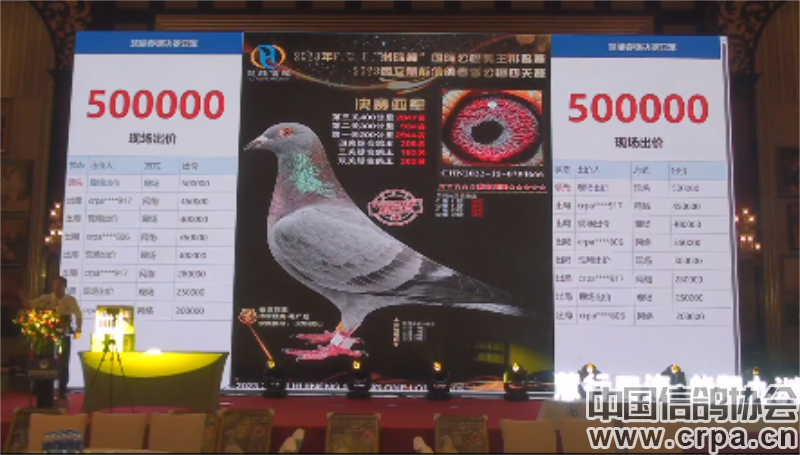 颁奖大会结束,5月24日慧能拍卖会将迎来更为激烈的一天——决赛300名-冠军的拍卖,中国信鸽协会官网将继续为参与本次拍卖的鸽友提供网络直播服务。在现场鸽友和网络鸽友的轮番竞价中,决赛亚军鸽、季军鸽均以50万高价拍出。