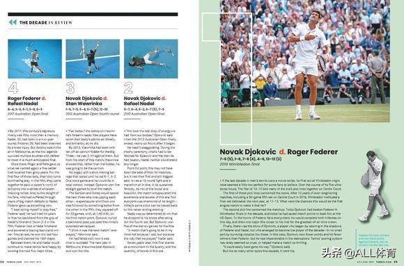 21世纪的第二个十年马上结束,在这个即将告别2019迎来2020的时候,著名网球媒体《网球》杂志对21世纪第二个十年男子网坛最精彩的比赛进行了盘点,他们选出了其中被认为是最精彩的十场较量。过去十年男子网坛的主旋律是德纳争霸,两人之间有3场比赛入围前十。让我们一起看一下,在过去十年之间都有哪些精彩的比赛上榜呢?