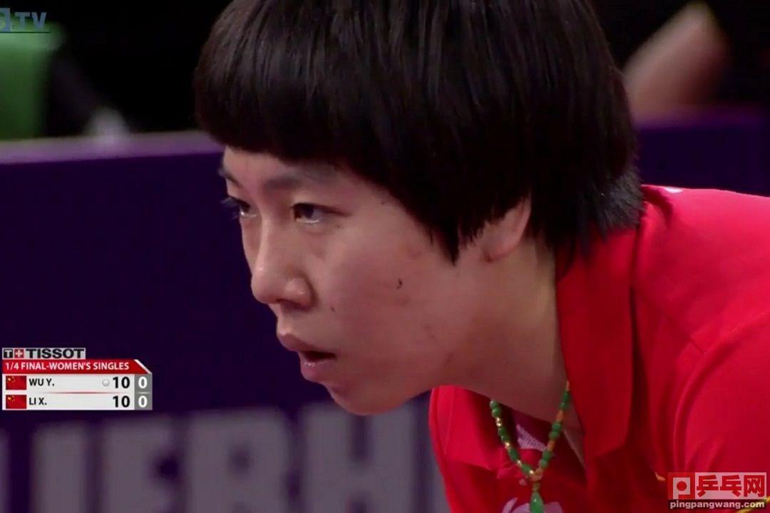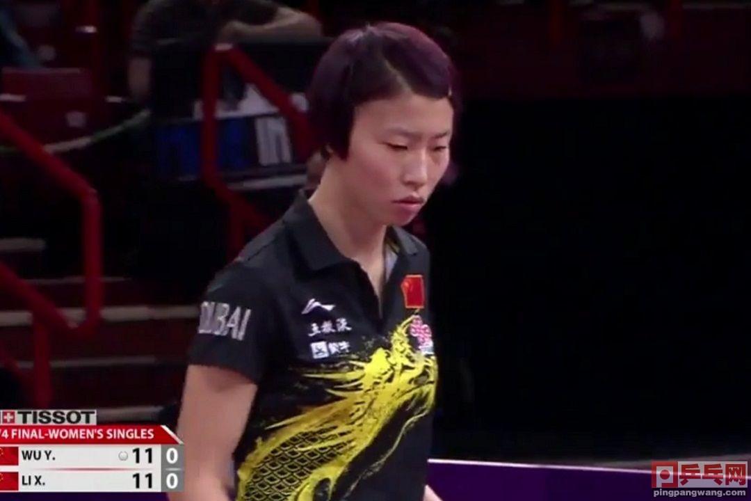 李晓霞拉武杨反手位,武杨削回冒高,李晓霞上步快攻,11-10。